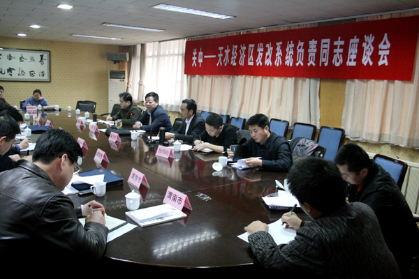 为了贯彻落实国家刚刚颁布的《西部大开发“十二五”规划》,进一步加快关中—天水经济区发展,3月1日上午,我委召开了关中—天水经济区发改系统负责同志座谈会,传达国家发改委西部大开发工作会议精神,座谈实施《关中—天水经济发展规划》情况,研究经济区发展规划实施过程中需要解决的问题,同时安排部署国家发改委四月上旬将在西安召开的深入推进关中—天水经济区发展规划实施工作座谈会的筹备工作。我委徐强副主任主持座谈会,关天经济区各市(区)发改系统负责同志,以及《西部大开发》、《新西部》等媒体参加了会议。